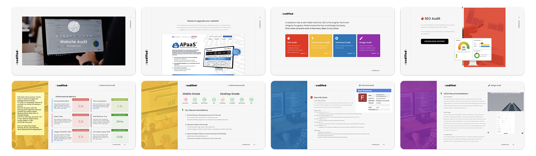 Once we have completed the audit we will create and send over a PDF report document, with included action points. This will let you know any items that need resolving on your website to improve the design, user experience, website performance, security and any errors that we’ve found.
